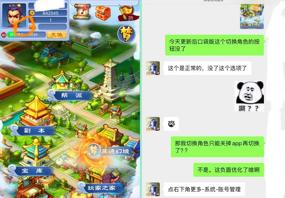 有一部分在口袋版上刷任务的玩家在本周惊奇以后发现口袋版的游戏界面发生了改换,那即是脚色头像右下角的阿谁脚色切换的按钮竟然莫得了,刚运转的时候还认为是某种解析bug,其后磋磨了心易司理之后才笃定正本该功能竟然果真被取消了。